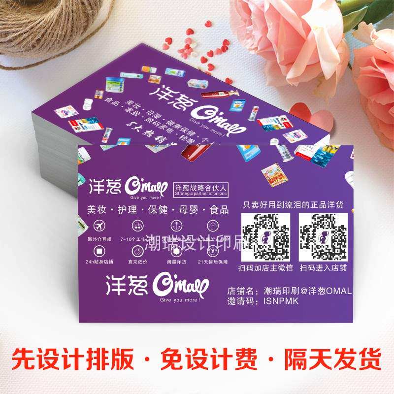 洋葱海外仓名片免费设计地推用品小礼品海报宣传单易拉宝定制作。热门设计联盟服务商
